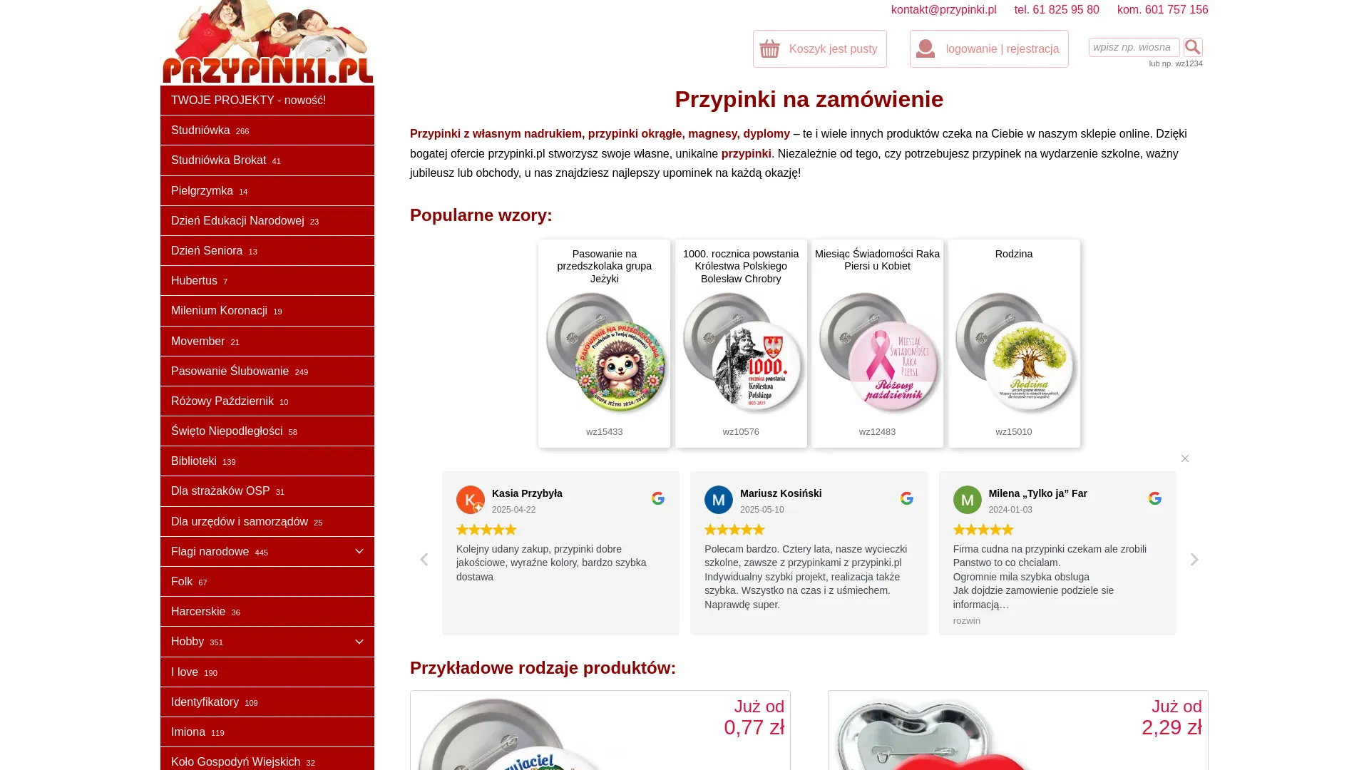 Przypinki.pl to czołowy producent gadżetów reklamowych i pamiątkowych, specjalizujący się w tworzeniu przypinek, magnesów oraz dyplomów. Nasza firma, z siedzibą w Poznaniu, od 27 lat dostarcza produkty, które wyróżniają się wyjątkową jakością oraz możliwością pełnej personalizacji. Misją Przypinki.pl jest spełnianie oczekiwań klientów poprzez łączenie estetyki z funkcjonalnością, co czyni nas zaufanym partnerem w budowaniu wizerunku marek i upamiętnianiu ważnych wydarzeń.